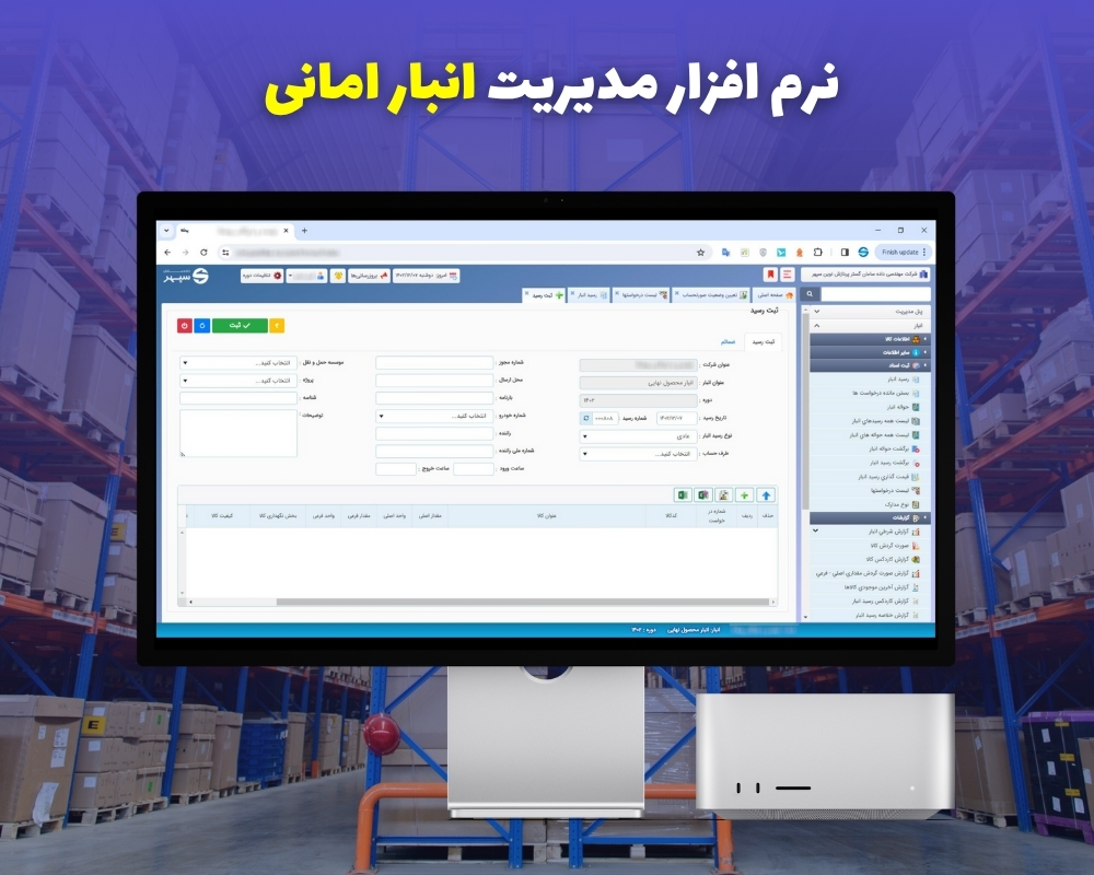 نرم افزار انبار امانی یک سامانه جامع و تحت وب برای مدیریت، کنترل و نظارت بر کالاهای امانی در سازمان ها و شرکت هایی است که در زمینه نگهداری و مدیریت کالاهای امانی و انبار امانی فعالیت می کنند. نرم افزار انبار امانی بستری متمرکز فراهم می کند تا تمامی عملیات مرتبط با کالاهای امانی، از ورود، خروج و برگشت تا وضعیت فعلی و محل نگهداری، به صورت دقیق و قابل اعتماد ثبت و پیگیری شوند. با استفاده از این سیستم، سازمان ها و شرکت ها می توانند خطاهای انسانی در ثبت اطلاعات را به حداقل رسانده، مغایرت های مالی و انبارداری را کاهش دهند و گردش کالاهای امانی را در یک محیط شفاف و یکپارچه مدیریت کنند. ساختار تحت وب و امکان اتصال به سایر بخش های سازمان، دیدی لحظه ای از وضعیت موجودی و عملکرد کالاهای امانی ارائه می دهد و هماهنگی بین واحدهای انبار، مالی و فروش را تسهیل می کند. به کمک نرم افزار انبار امانی، تصمیم گیری درباره بازگشت کالا، تمدید قراردادها و مدیریت تعهدات امانی سریع تر، دقیق تر و مطمئن تر انجام می شود، در حالی که بهره وری و نظم در کل چرخه ی مدیریت کالاهای امانی افزایش می یابد.